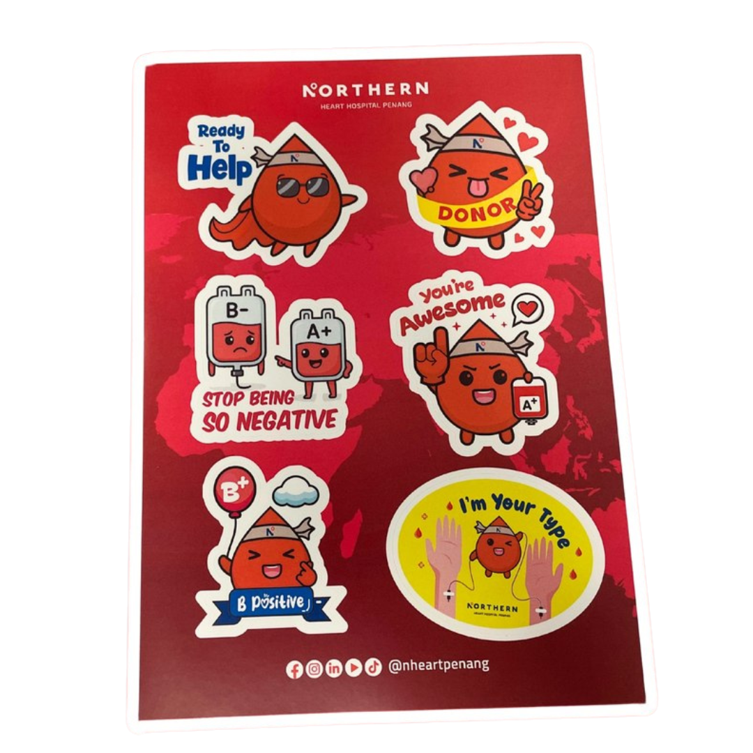 Fun, heart and blood-donation themed stickers to remind you that you helped restore lives.