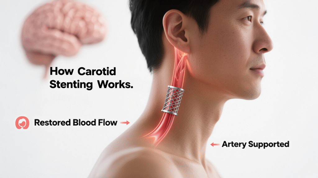 Carotid stenting is an advanced, minimally invasive procedure designed to reduce the risk of stroke by restoring blood flow in narrowed carotid arteries. These arteries, located on either side of your neck, supply your brain with oxygen-rich blood. When they become blocked by plaque buildup, the risk of stroke increases dramatically. This article explores how carotid stenting works, who is a candidate, and what to expect during and after the procedure.