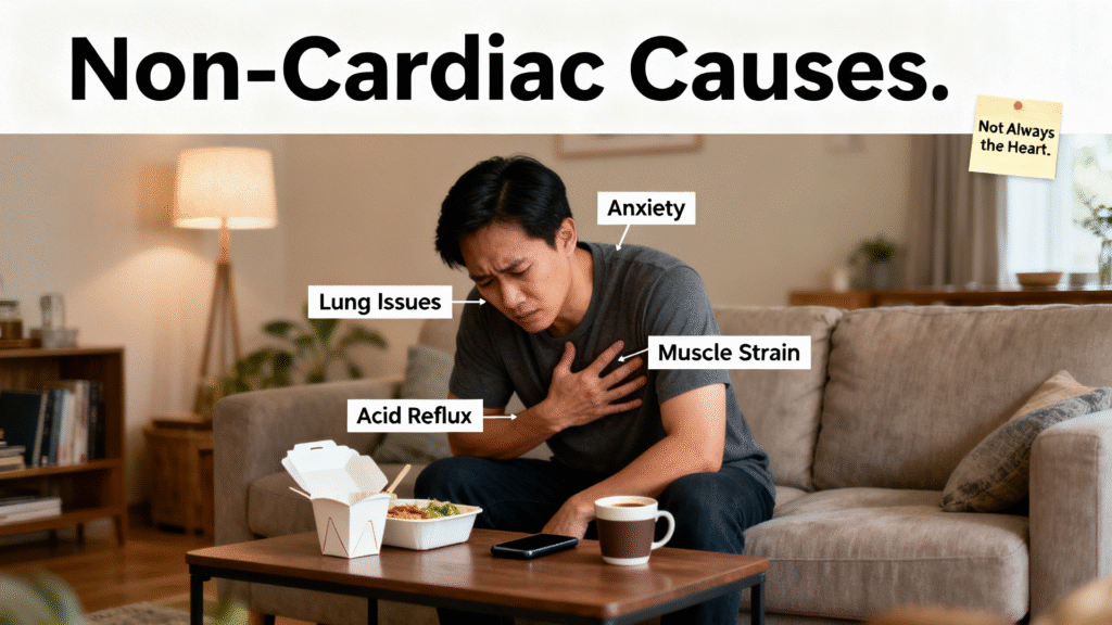 Not all chest pain comes from the heart. Lung conditions such as pneumonia, pulmonary embolism, or pleuritis can mimic cardiac pain. Gastrointestinal problems like acid reflux or esophageal spasms also cause chest discomfort. Even anxiety and muscle strain can be culprits. Despite this wide range, hospitals always rule out cardiac issues first because of their life-threatening nature.