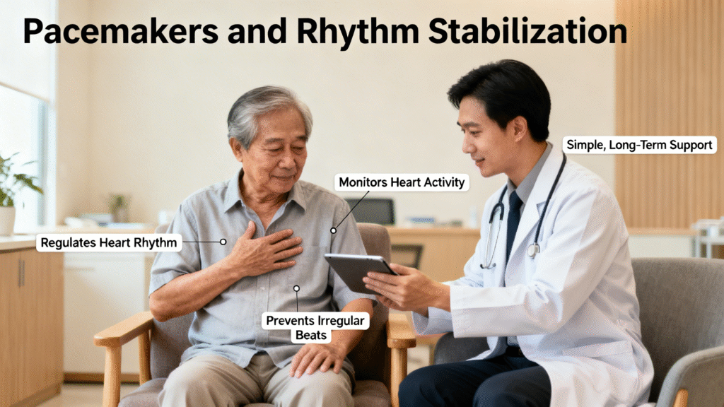 Irregular heart rhythms can cause dizziness, fainting, and reduced stamina. Pacemakers restore electrical coordination, ensuring the heart beats at an appropriate rate.