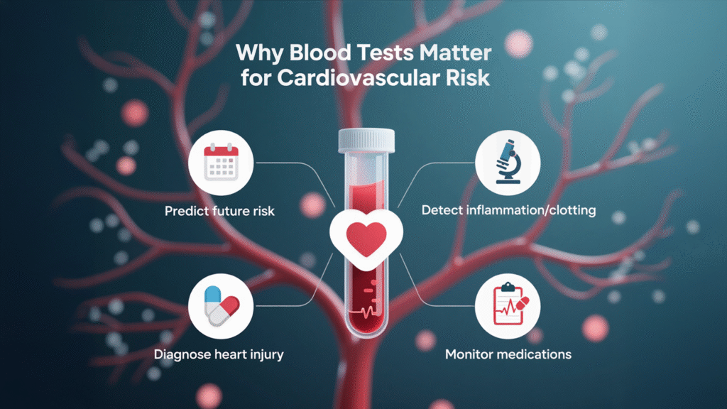 Imagine your blood as a highway that carries not just oxygen, but clues—tiny warning signs that give insight into what’s happening inside your heart and blood vessels. Blood tests allow your doctor to peek inside this highway and detect early signs of heart disease, inflammation, and other risks.