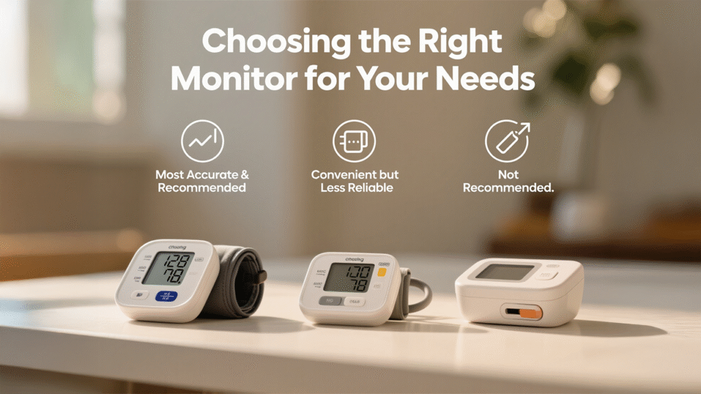 Upper arm monitors are the gold standard. They are more reliable than wrist monitors, which can be affected by positioning and movement. At-home users should stick with validated upper arm models unless directed otherwise by a doctor.