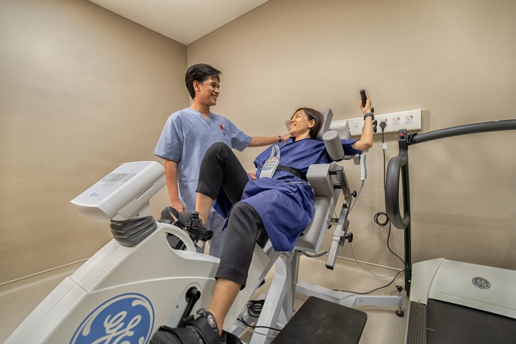 Trained physiotherapists monitor your heart rate, blood pressure, and oxygen levels as you begin walking, cycling, or using resistance bands. It’s all carefully tailored to your condition.